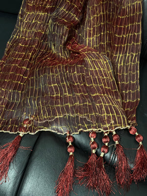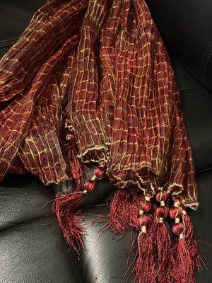 Mehndi Dupatta For The Lads In Dark Maroon Colour With Tussles