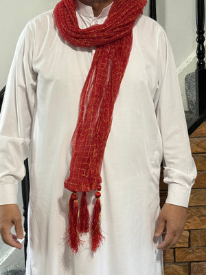 Mehndi Dupatta for the Lads is a traditional mehndi accessory to add a festive flair to special occasions. This wrap around scarf features a Maroon colour in a shaded pattern. The lightweight, adjustable fabric makes this a comfortable and versatile choice for boys and gents. Crafted from high-quality materials, it ensures long-lasting durability and exceptional comfort for everyday wear. The timeless design pairs effortlessly with both casual and formal outfits, making it a versatile wardrobe staple.