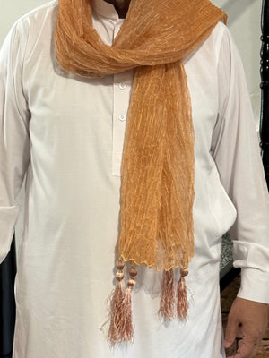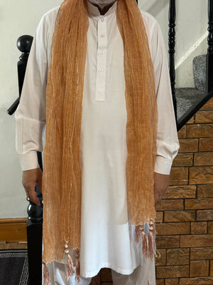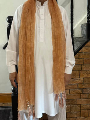Mehndi Dupatta for the Lads is a traditional mehndi accessory to add a festive flair to special occasions. This wrap around scarf features in gold colour in a shaded pattern. The lightweight, adjustable fabric makes this a comfortable and versatile choice for boys and gents. Crafted from high-quality materials, it ensures long-lasting durability and exceptional comfort for everyday wear. The timeless design pairs effortlessly with both casual and formal outfits, making it a versatile wardrobe staple.