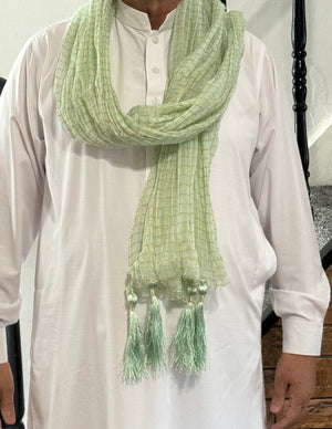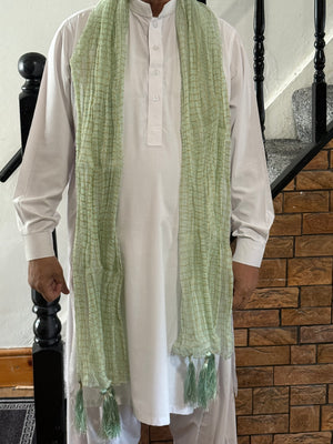 Mehndi Dupatta for the Lads is a traditional mehndi accessory to add a festive flair to special occasions. This wrap around scarf features in Apple Green colour in a shaded pattern. The lightweight, adjustable fabric makes this a comfortable and versatile choice for boys and gents. Crafted from high-quality materials, it ensures long-lasting durability and exceptional comfort for everyday wear. The timeless design pairs effortlessly with both casual and formal outfits, making it a versatile wardrobe staple.