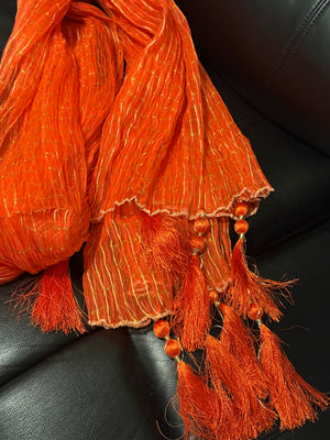 Mehndi Dupatta For The Lads In Orange Colour With Tussles