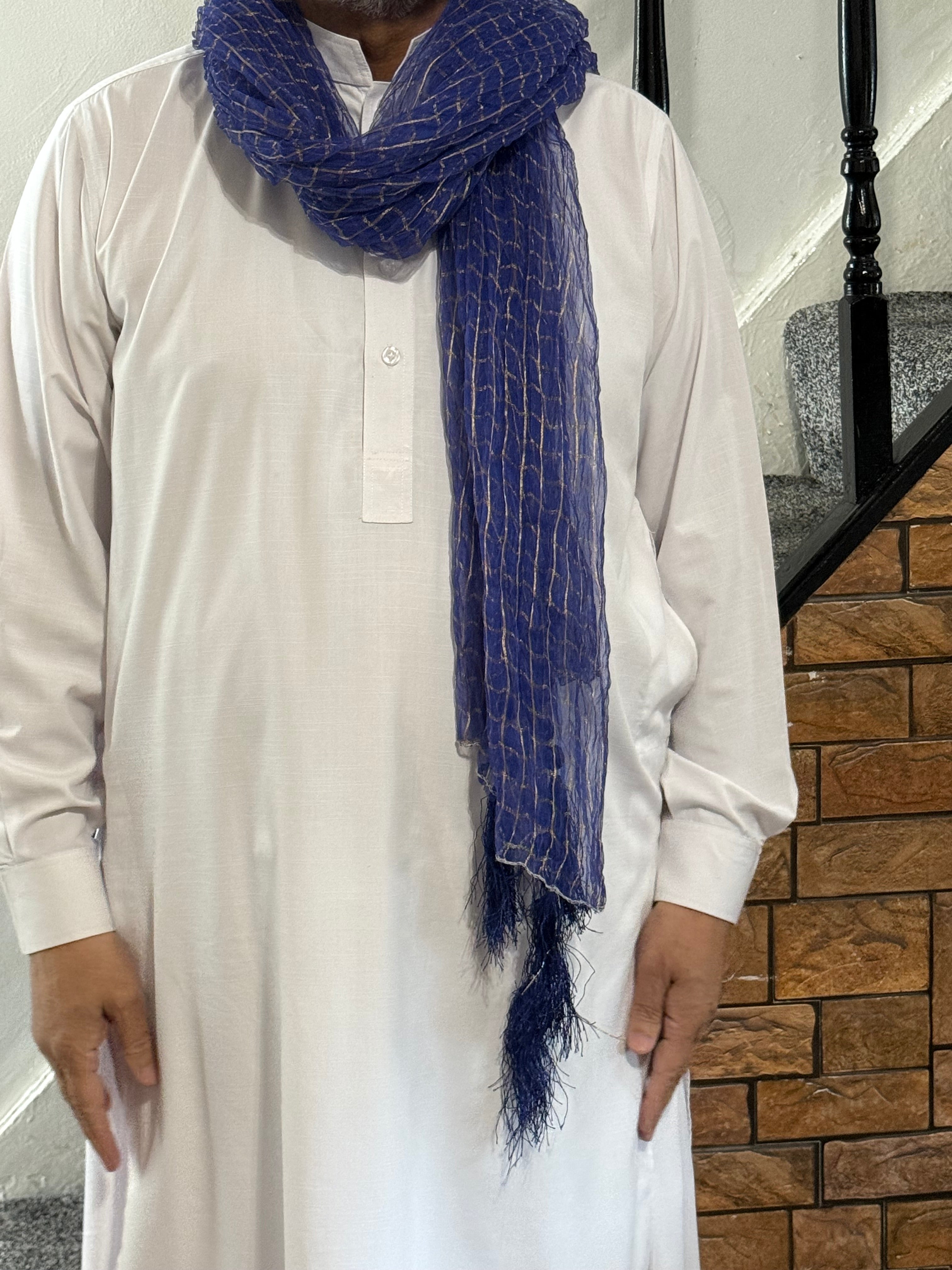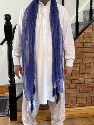 Mehndi Dupatta for the Lads is a traditional mehndi accessory to add a festive flair to special occasions. This wrap around scarf features in Royal Blue colour in a shaded pattern. The lightweight, adjustable fabric makes this a comfortable and versatile choice for boys and gents. Crafted from high-quality materials, it ensures long-lasting durability and exceptional comfort for everyday wear. The timeless design pairs effortlessly with both casual and formal outfits, making it a versatile wardrobe staple.