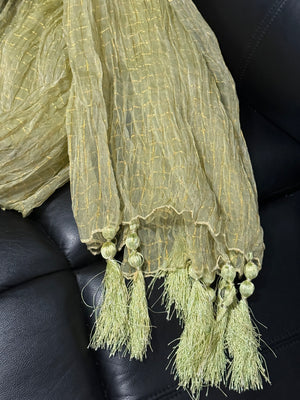 Mehndi Dupatta For The Lads In Sage Green Colour With Tussels