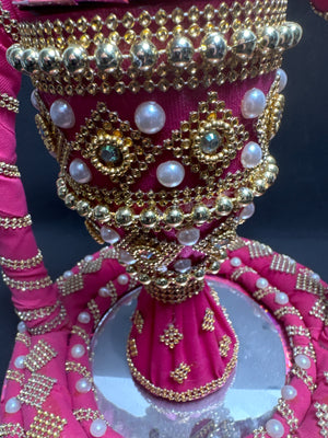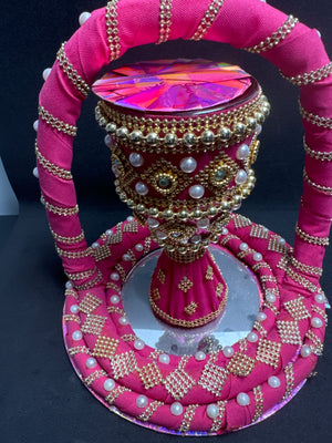 Glass decorated with milk. Doodh pilai is a tradition in our region dating back centuries. The detailed designs on this glass are a beautiful representation of that heritage. Serve your guests in style with this beautiful glassware. Each piece is handmade and unique, making it a perfect addition to your doodh pilai party