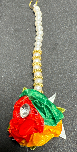 - Product Overview: This multi colour flower bindi is designed for use by Groom & bridegroom maids. It features a vibrant flower design with a mix of red, green, and yellow colors. The bindi is adorned with a sparkling gemstone, adding a touch of elegance.