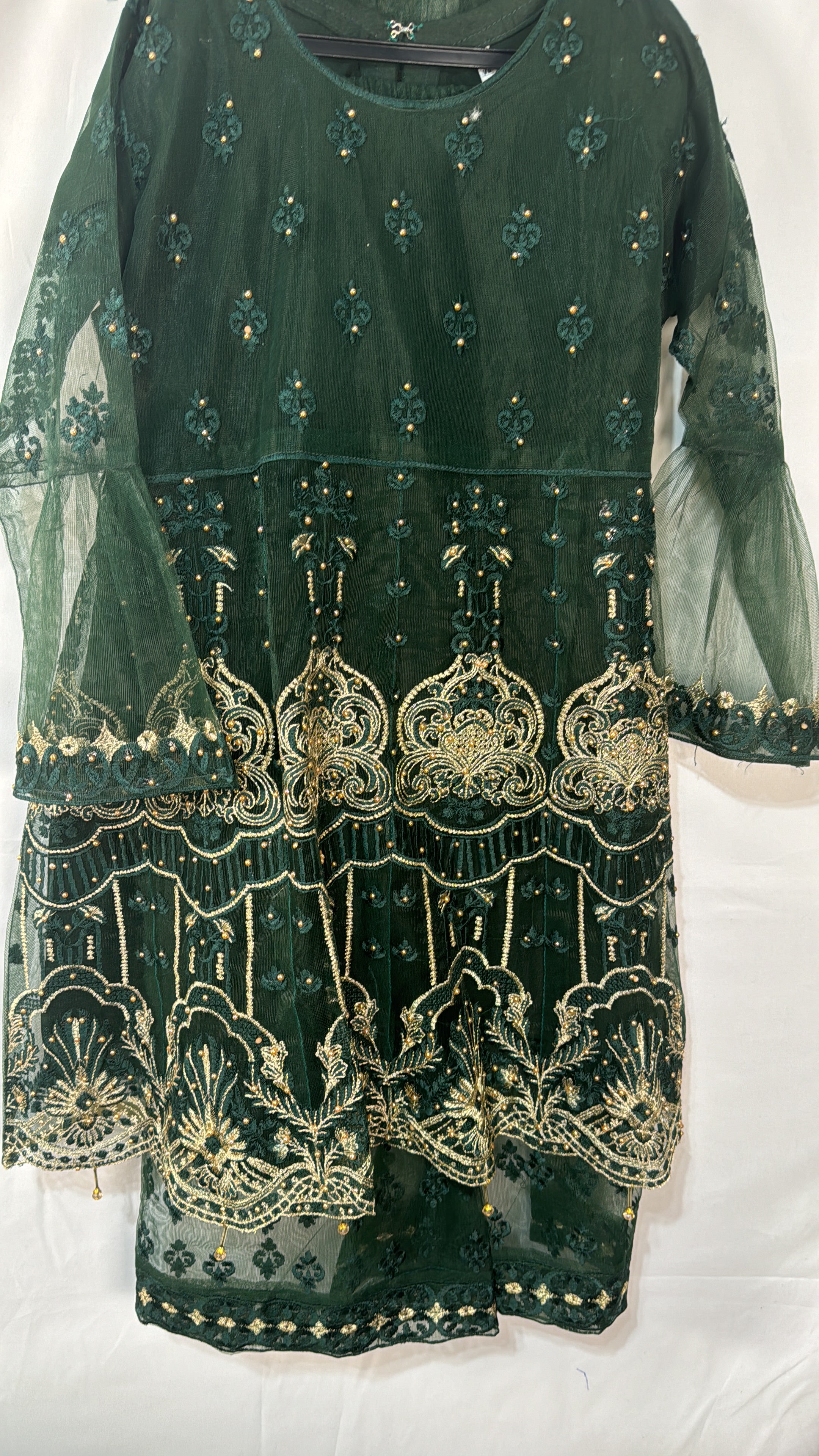 Beaded work on top and on plazzo trouser , soft net with lining in top and plazzo trouser