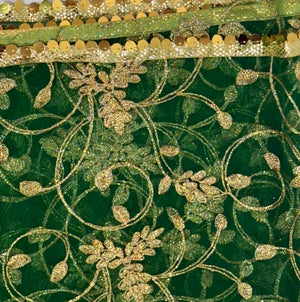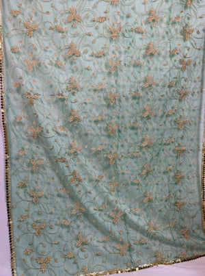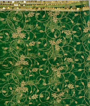 Net Duppta Deep Sea Green Colour With Golden Embroidery
