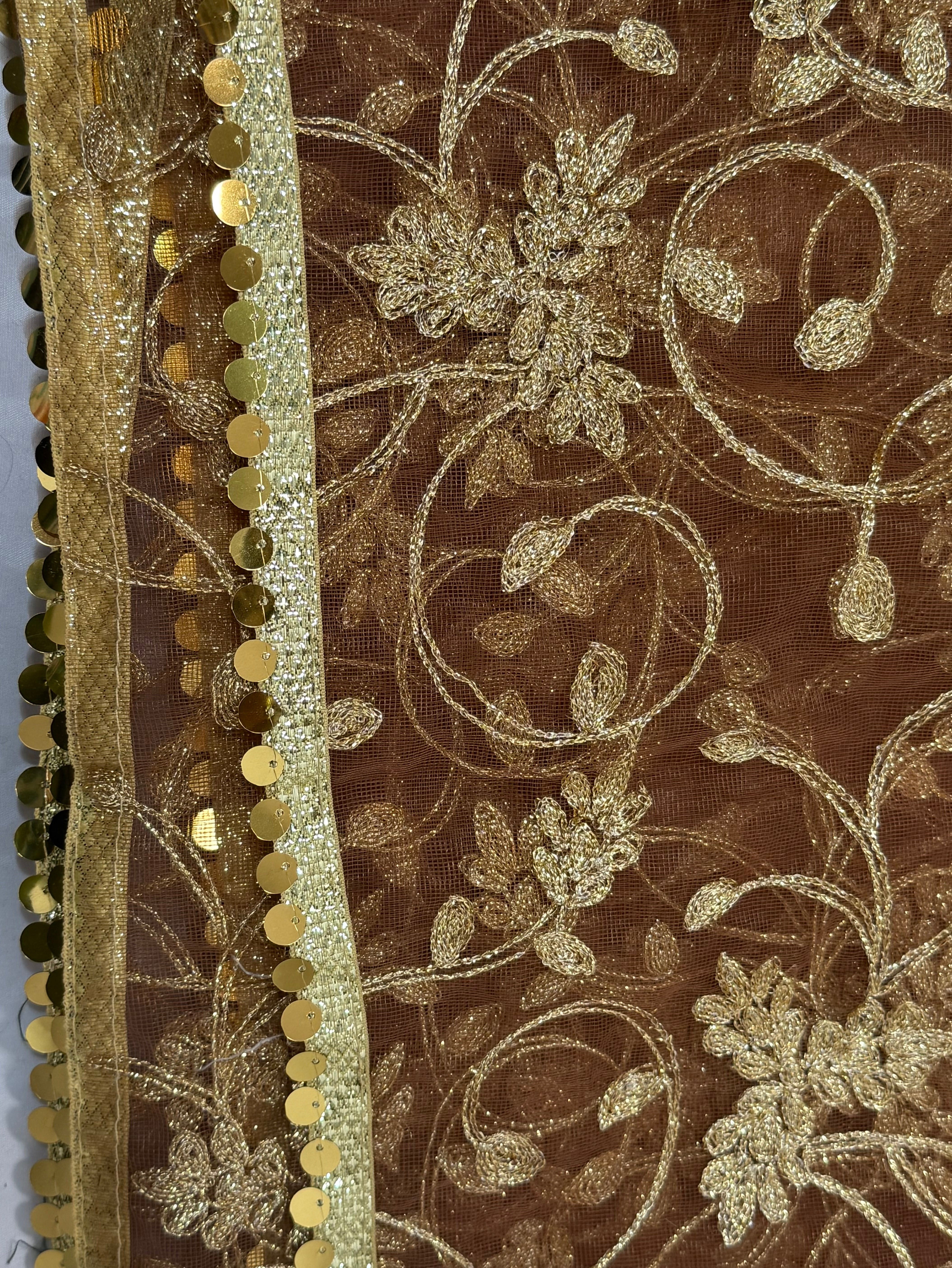 Net Dupptta Brown Colour With Golden Embroidery