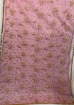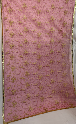 Net Dupptta Persian Pink Colour With Golden Embroidery