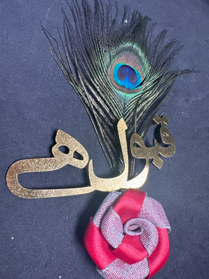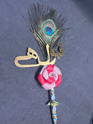 Bridal Nikah Pen D39 - Decorated Peacock Feather & Red Rose Bridal Pen for Sign Nikah Documents Matching Attire