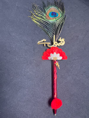 Bridal Nikah Pen D47 with Peacock Feather Decor for Matching Bridal Attire and Elegant Nikah Documents