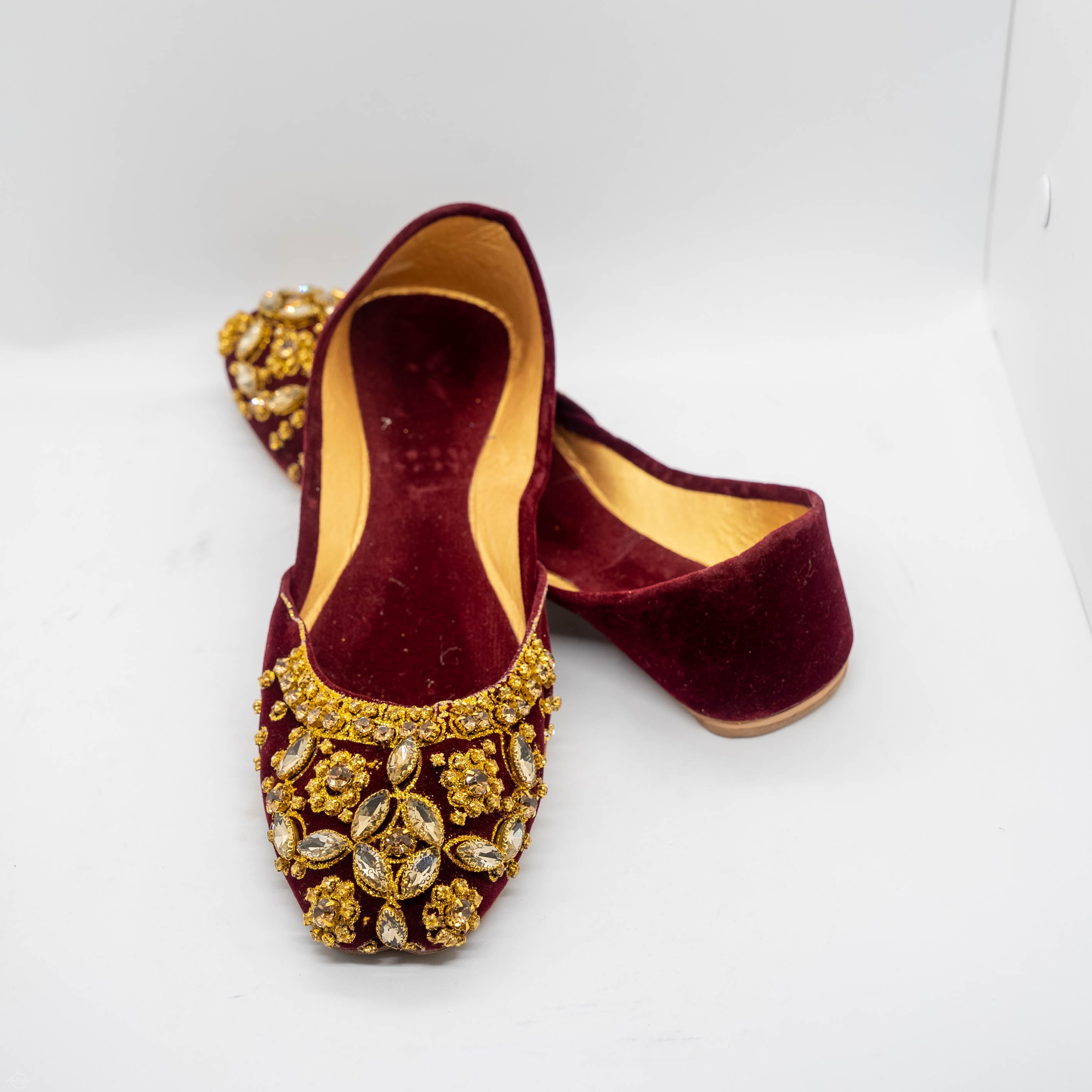 ORNAMENTED KHUSSA MAROON Handcrafted Maroon Khussa with Intricate Ornamental Designs High-Quality Materials Comfortable and Stylish for Any Occasion