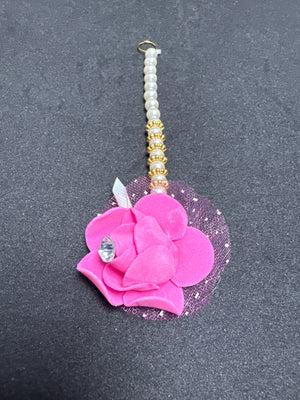 This pink colour flower bindi is a perfect choice for those looking to add a traditional touch to their attire. The gold beaded strap and rhinestone center make it a standout accessory.