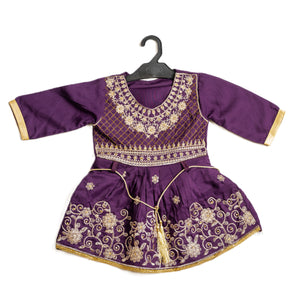 Purple cotton embroidered frock Casual Dress