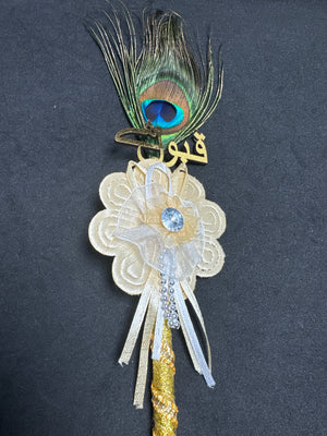 Bridal Nikah Pen NP3 - Decorated Peacock Feather & Gold Flower Design for Brides to Sign Nikah Documents Matching Bridal Pen