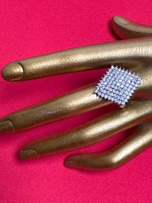 Discover a unique sparkle with this stunning silver ring. It's crafted with exquisite artificial jewels and will be a beautiful addition to any outfit. A unique, eye-catching piece to make you feel special, every day! Will you make it yours?