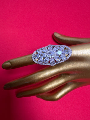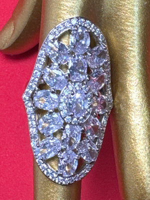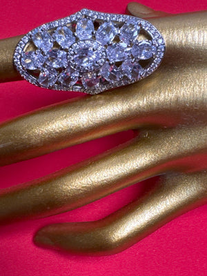 Discover a unique sparkle with this stunning silver ring. It's crafted with exquisite artificial jewels and will be a beautiful addition to any outfit. A unique, eye-catching piece to make you feel special, every day! Will you make it yours?