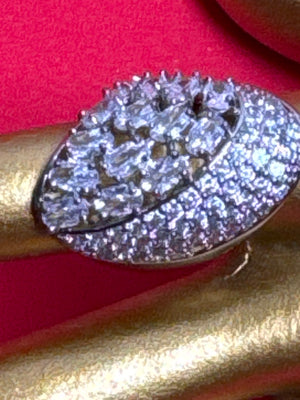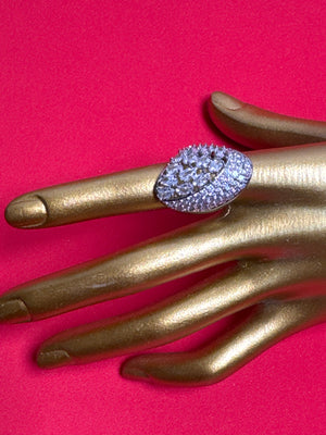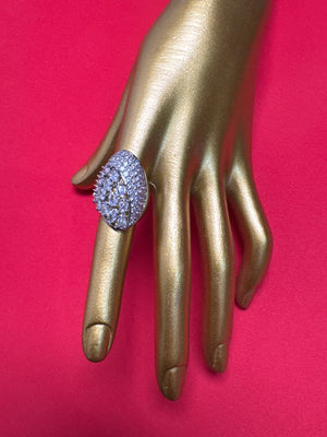 Discover a unique sparkle with this stunning silver ring. It's crafted with exquisite artificial jewels and will be a beautiful addition to any outfit. A unique, eye-catching piece to make you feel special, every day! Will you make it yours?