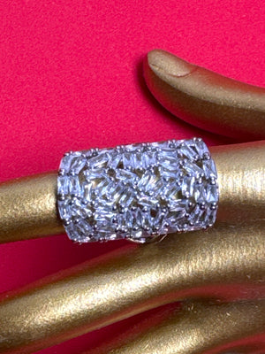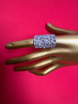 Discover a unique sparkle with this stunning silver ring. It's crafted with exquisite artificial jewels and will be a beautiful addition to any outfit. A unique, eye-catching piece to make you feel special, every day! Will you make it yours?