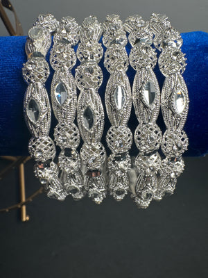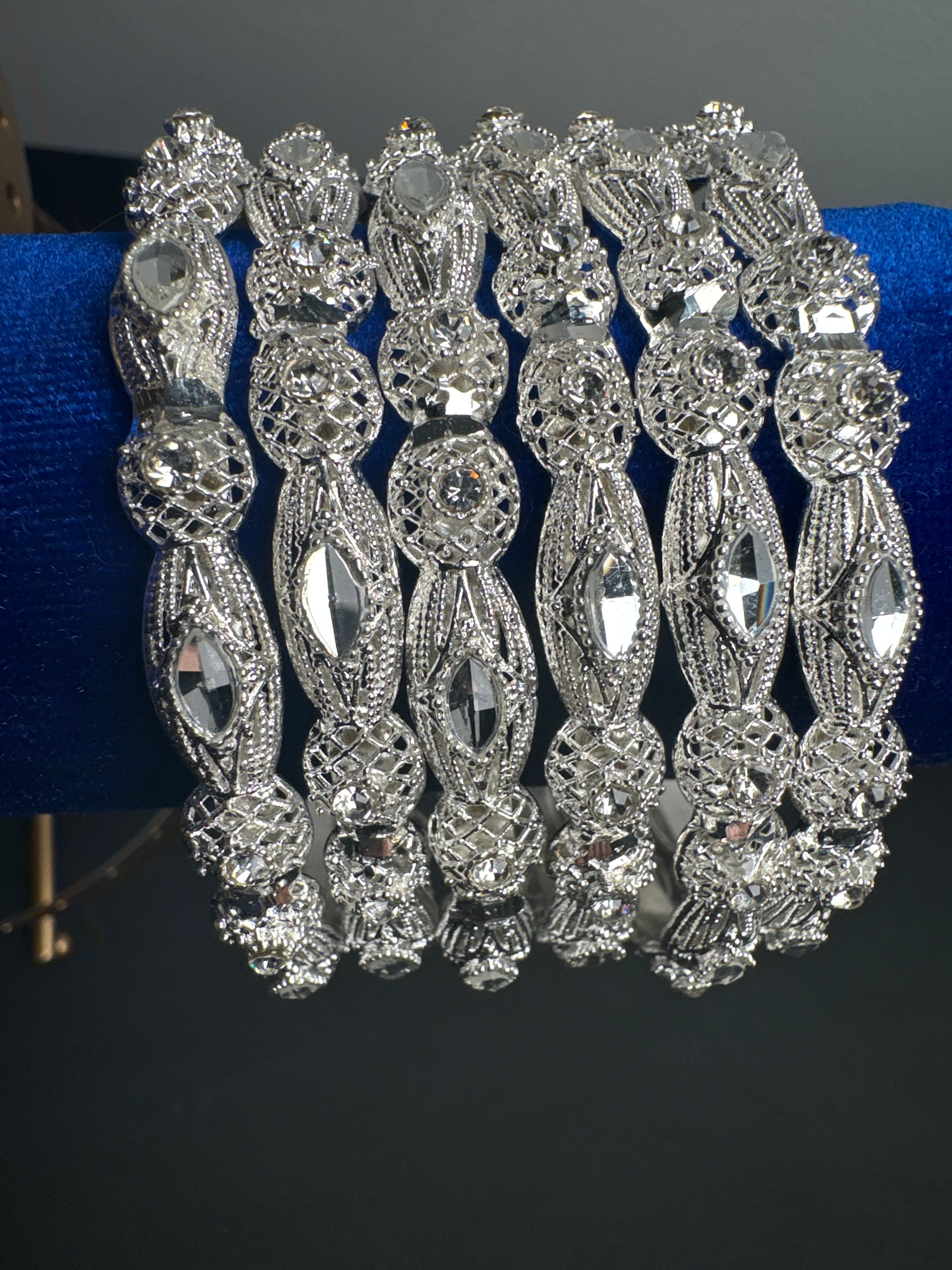 Sterling silver Artificial Bangles set of 6 bangles with Silver diamond crystal bead