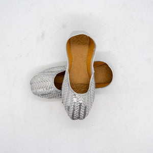 Silver Khussa Shoes with Intricate Sequence Work - Handcrafted for Formal & Everyday Wear - Elegant and Comfortable Fit
