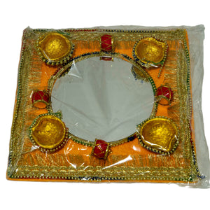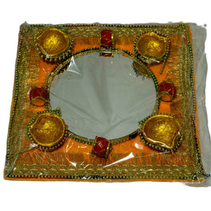 This square mehndi tray with mirror is the perfect addition to any henna artist's toolkit. The mirrored surface allows for easy application and precision, while the square shape provides ample space for all necessary tools. Increase efficiency and accuracy with this must-have item.
