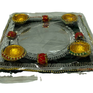 This square mehndi tray is a must-have for anyone looking to elevate their mehndi game. The mirror silver finish adds a touch of elegance, while the sturdy design ensures durability. Perfect for professional artists or self-application, this tray is sure to enhance your henna experience.