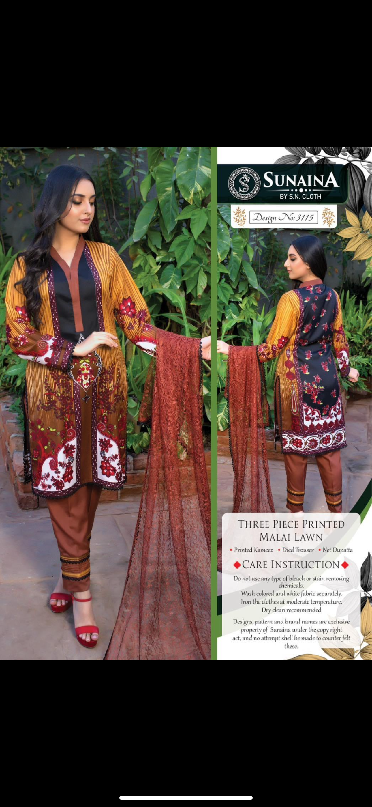 Sunaina three piece printed malai lawn SL29