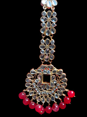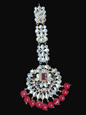 Teeka - Bindia in Gold colour with white and maroon pearls TB 02