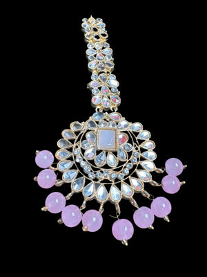 Gold finish beautiful handcrafted Tika . The Tika is embellished with silver and blue . stones to finish the look. Gold Medium sized