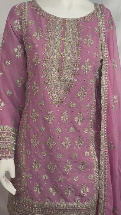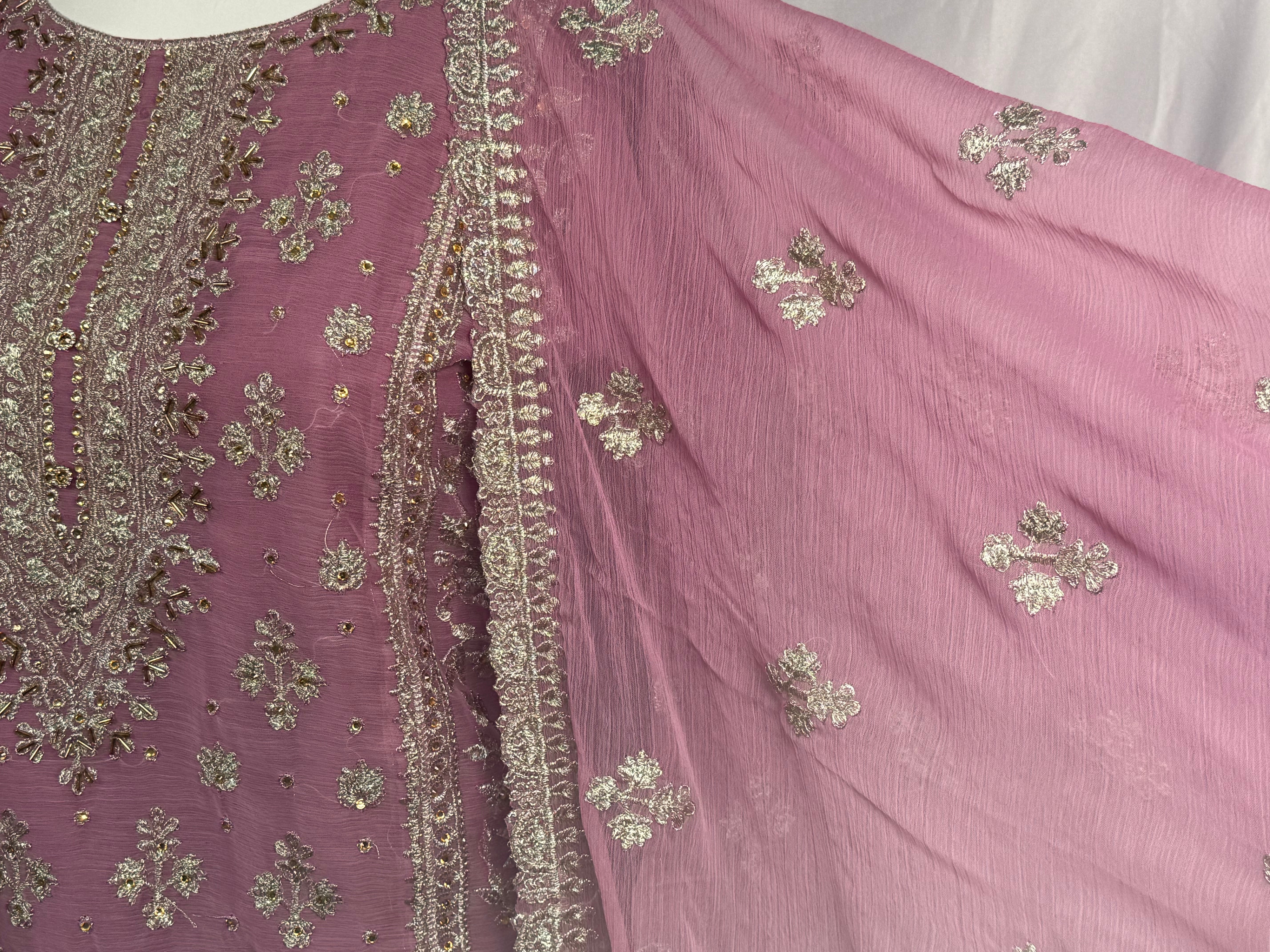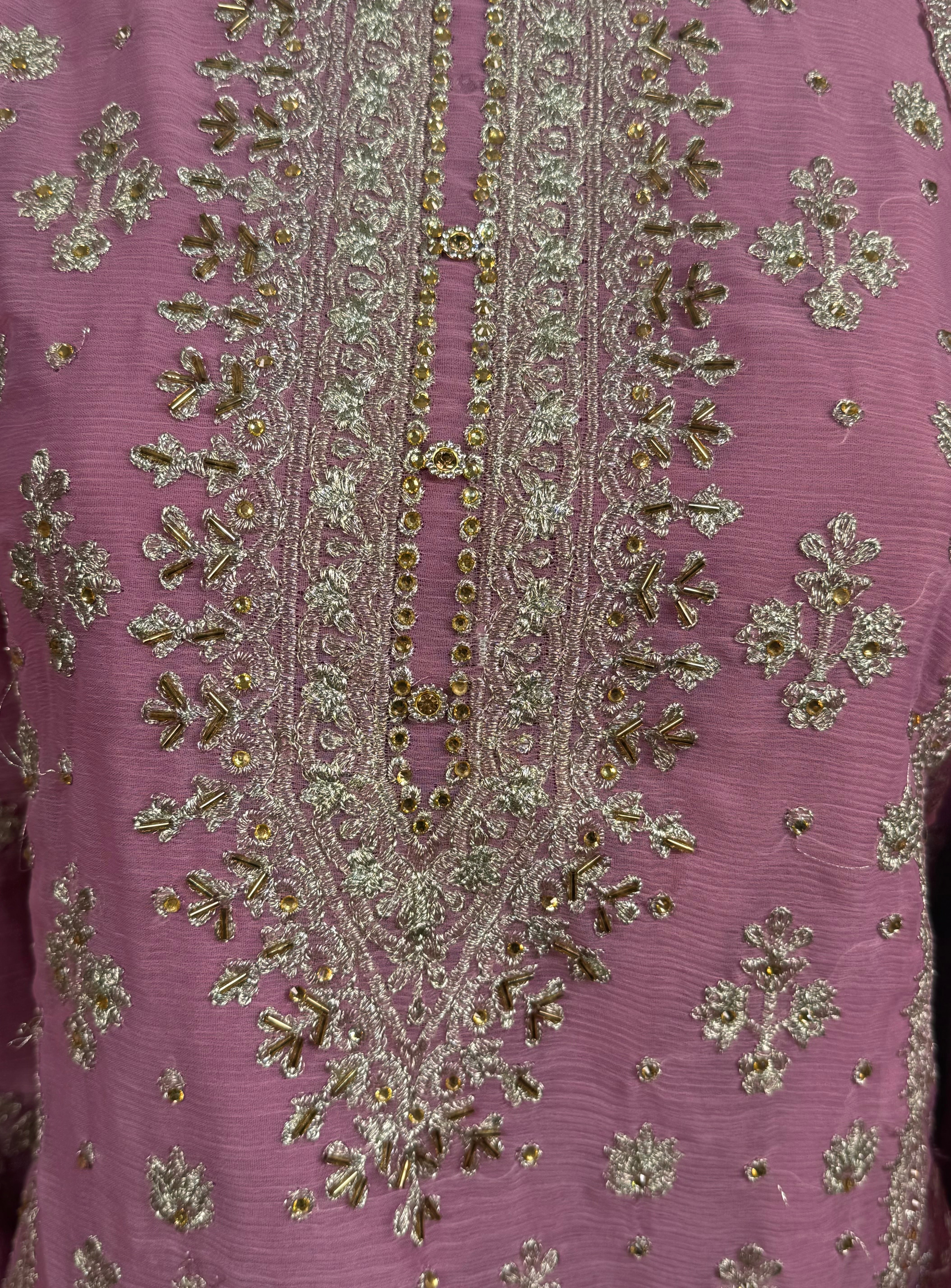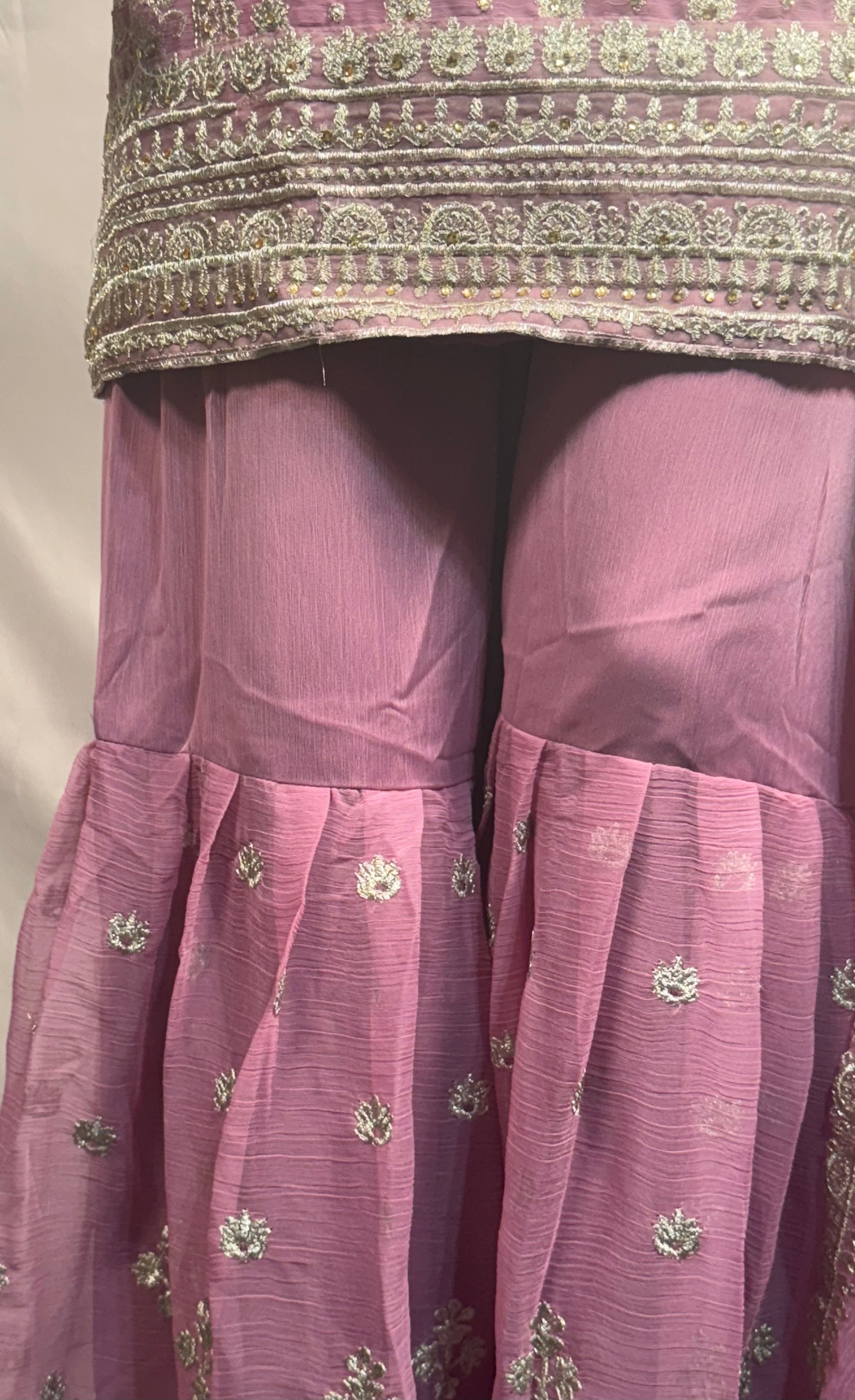 Ladies 3 Pcs Dusty Pink Garara Set With Embroidery And Beads Work (Including Shirt, Garara And Duptta ) Lgs-6