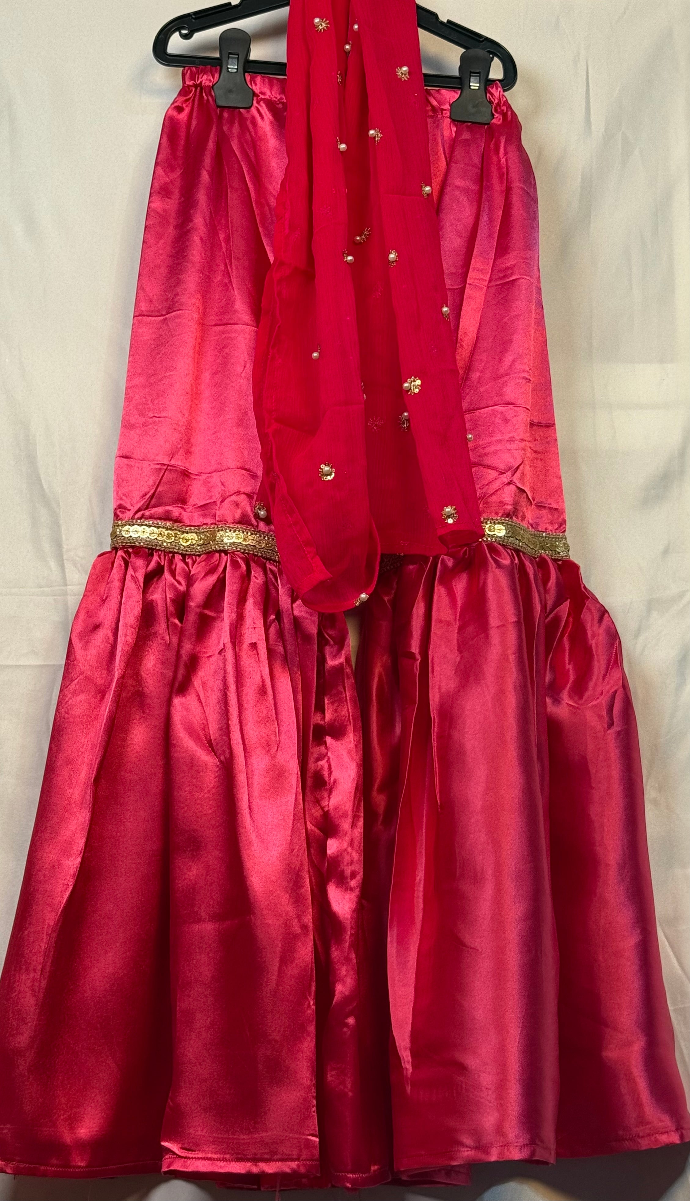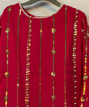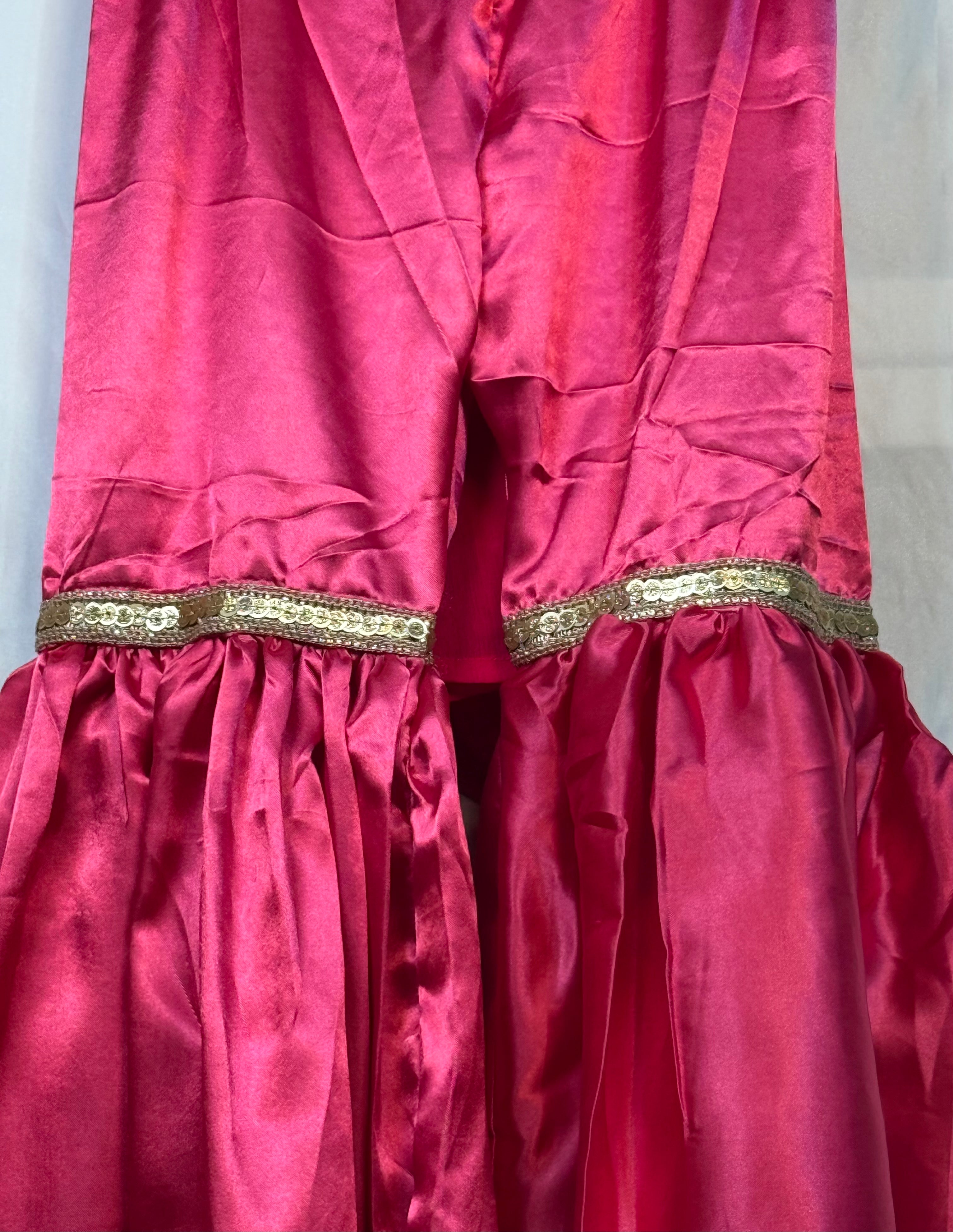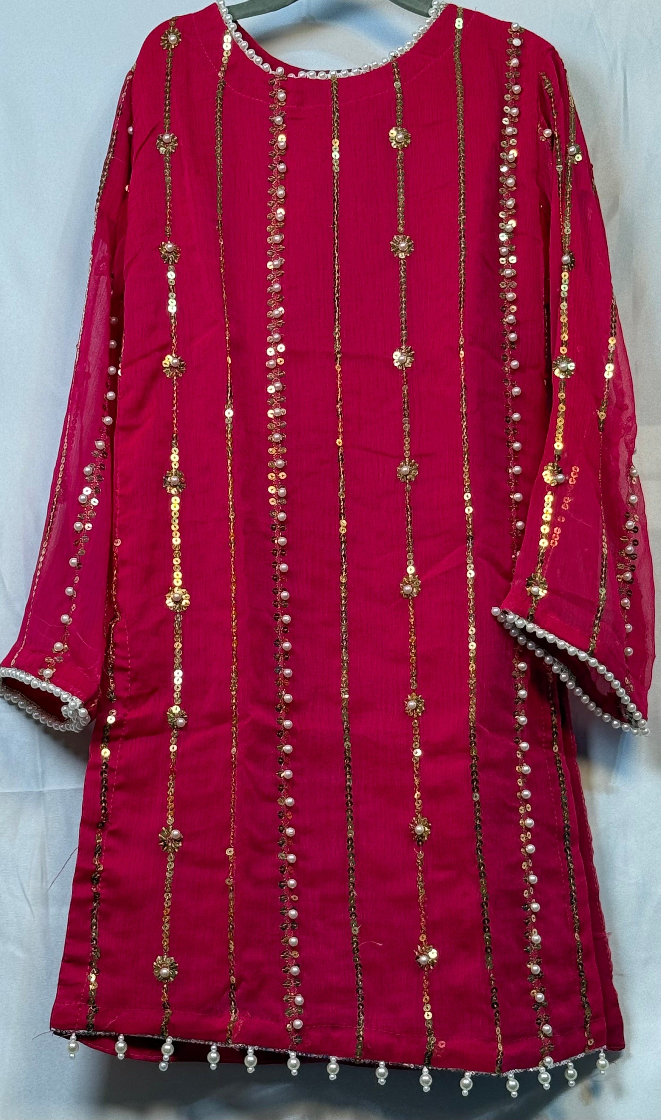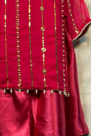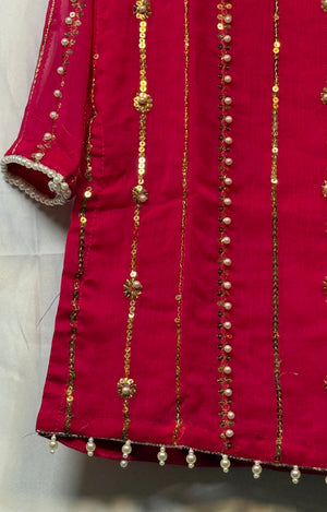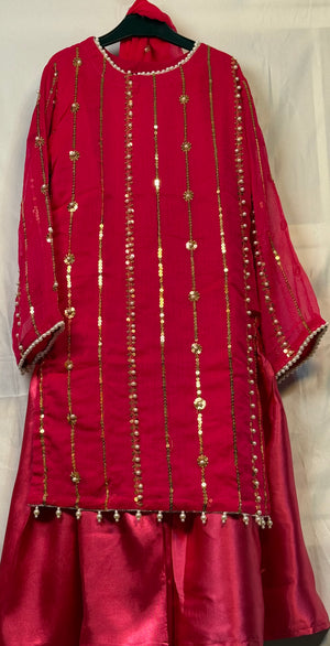 Girls Shocking Pink Chiffon Shirt & Garara Set With Sequence Emobidary On Shirt (3 Piece) Gcgs-23