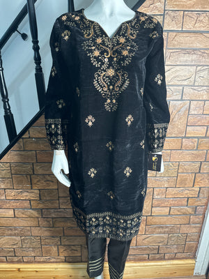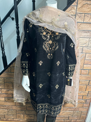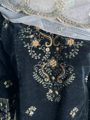 Women Black Valvet suit 3 PCS with heavy embroidery & Pearls work