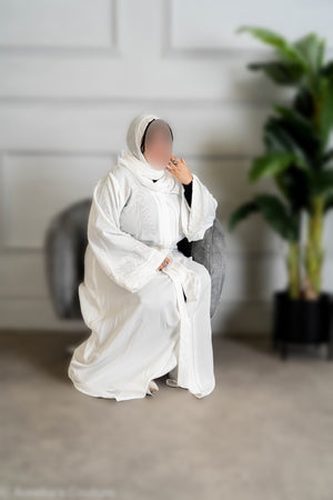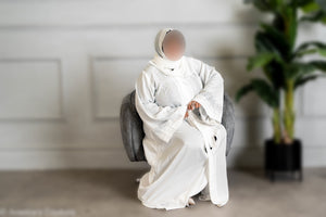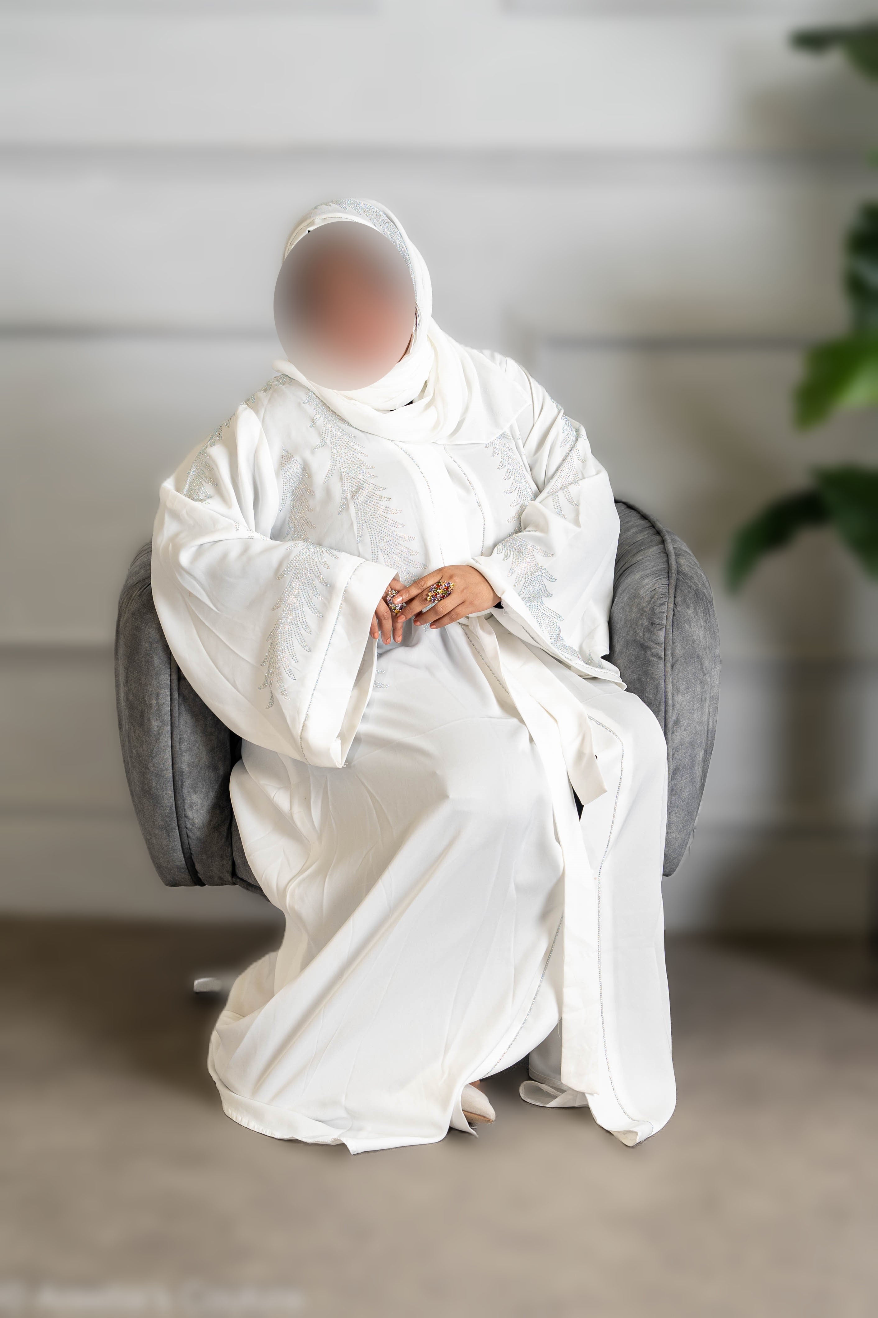 Expertly crafted from the finest DMC fabric, our White Abaya boasts a versatile and elegant design. Immaculately white, this abaya is perfect for any occasion and offers a timeless style that will effortlessly elevate your look. Made with high-quality material, our White Abaya exudes luxury and sophistication.