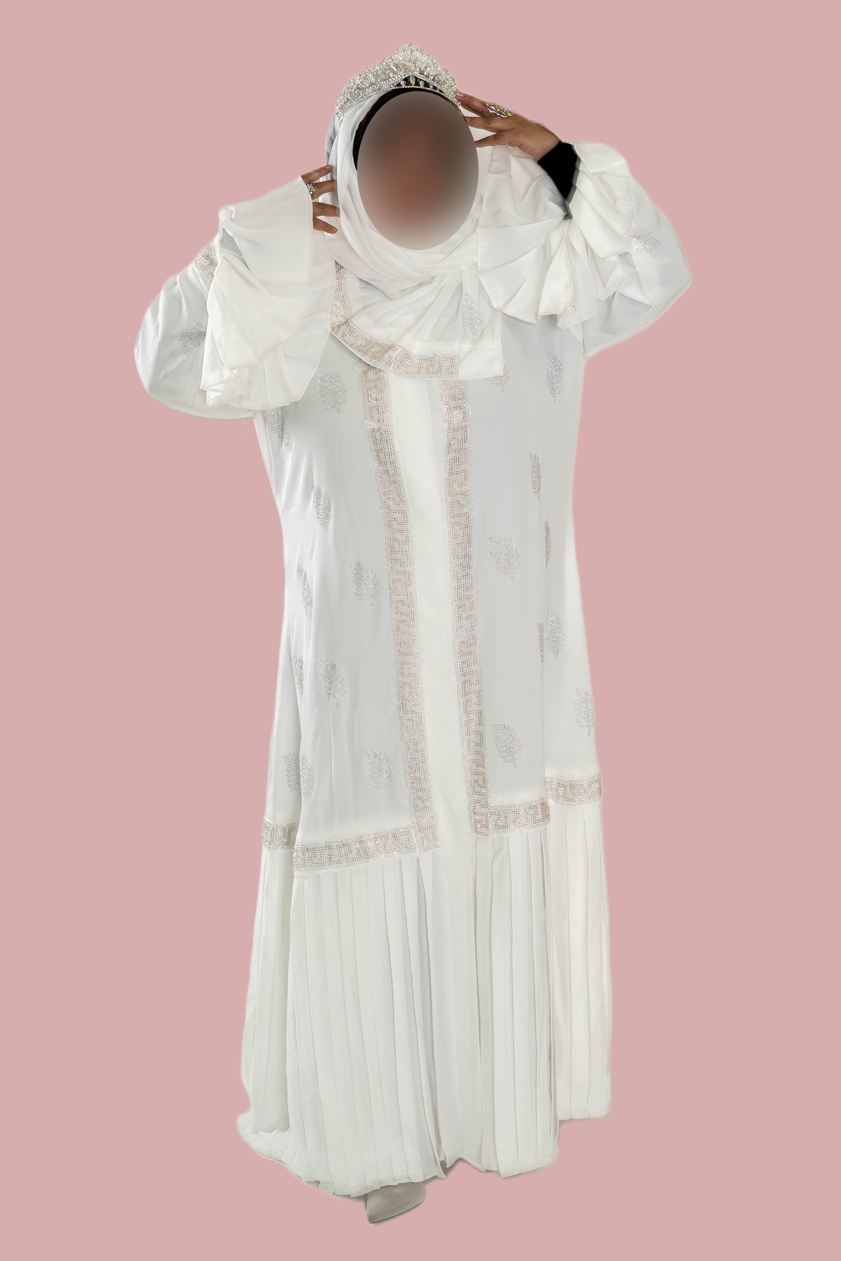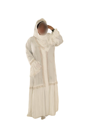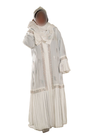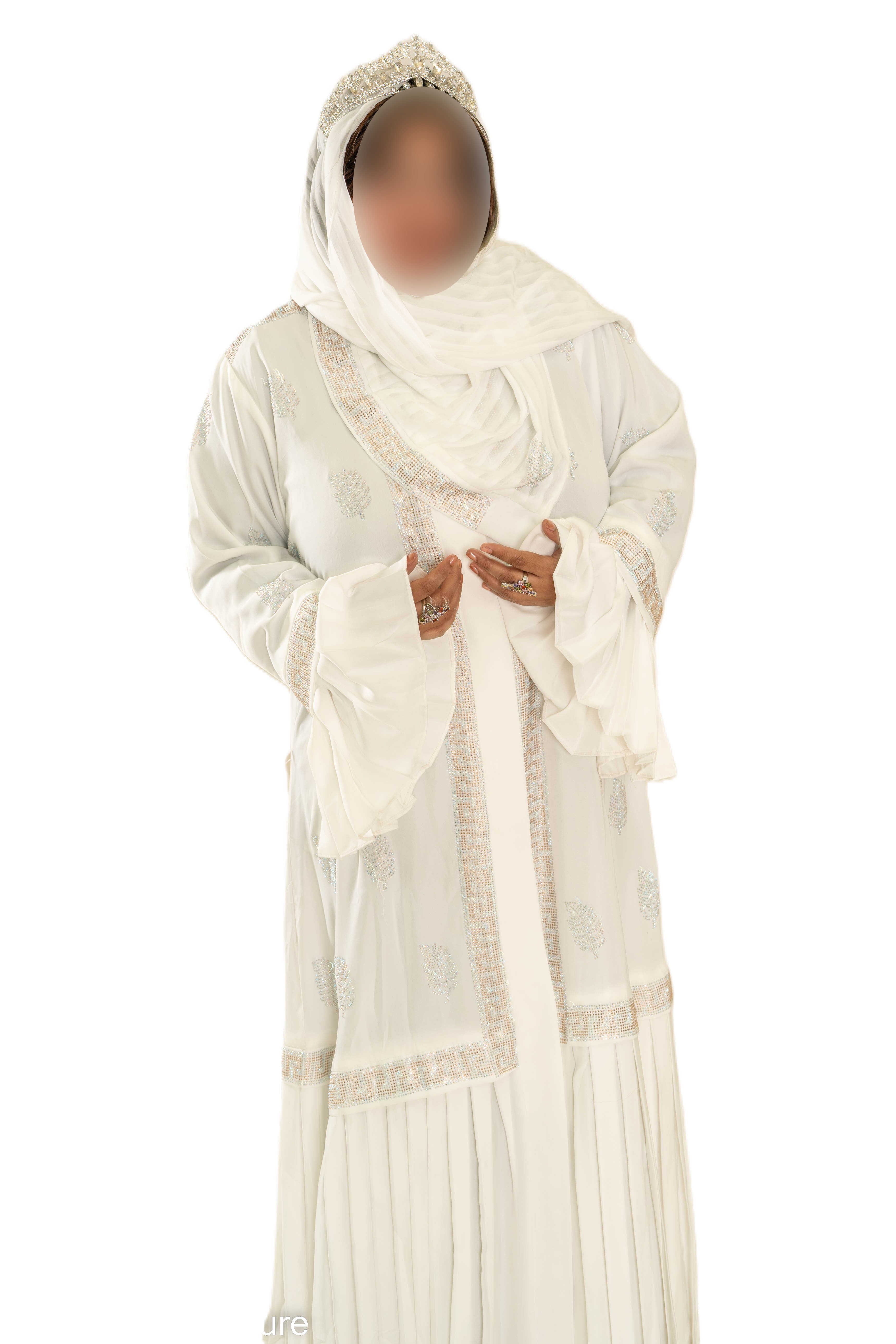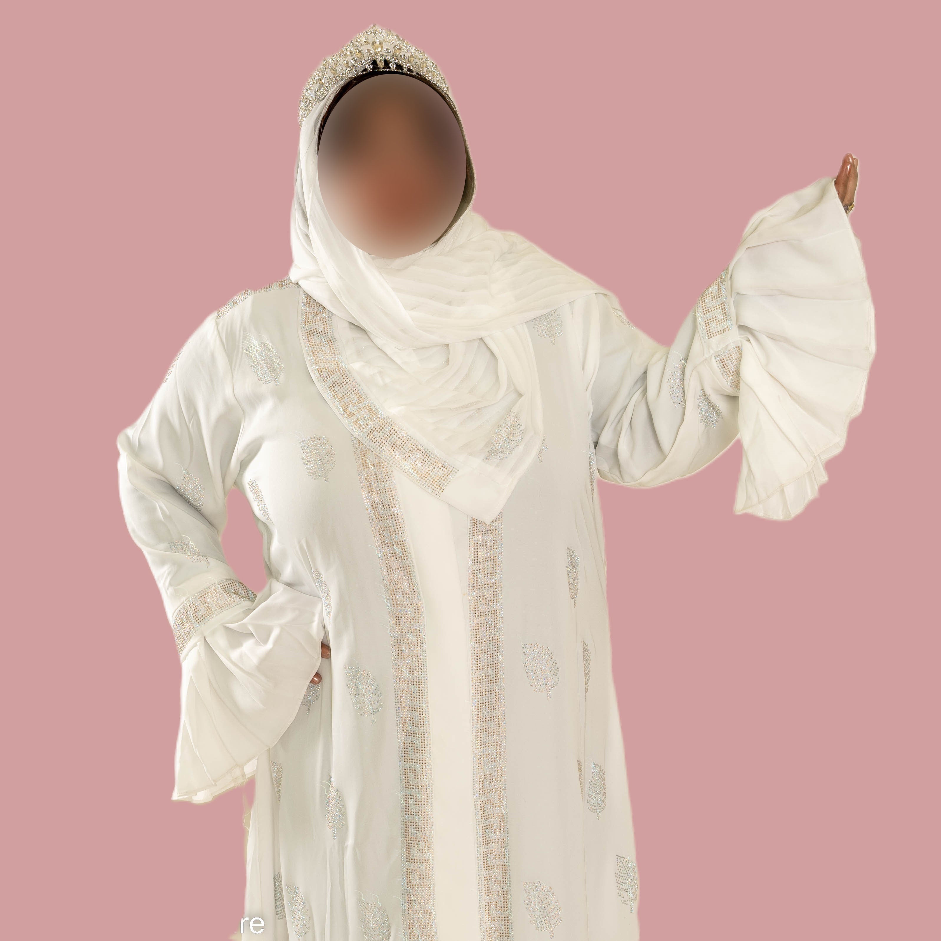 This White DMC abaya maxi style features a sleek, modern design that is perfect for any occasion. Made with high-quality materials, this abaya offers both comfort and style. Its timeless white color allows for endless outfit possibilities, making it a versatile addition to any wardrobe. Expertly crafted with attention to detail, this abaya is sure to become a staple piece in your collection.