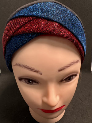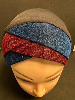 Hijab cap for ladies in Red, Blue & black with with glitter net fabric HC4