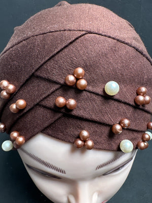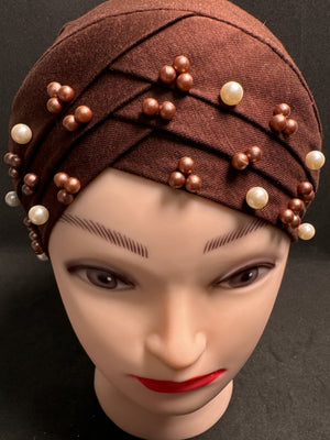 Hijab cap for ladies in Dark brown with beads HC11