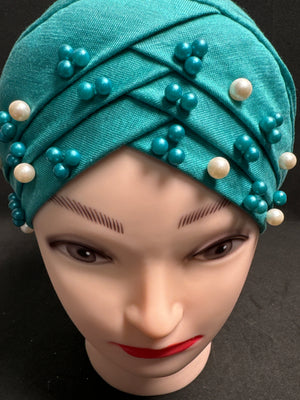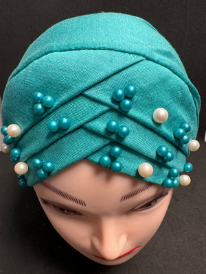 Hijab cap for ladies in Aqua with beads HC18