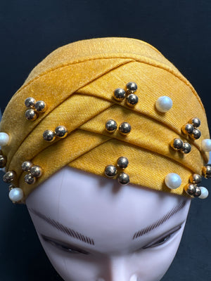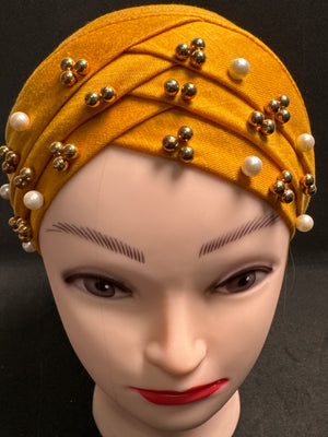 Hijab cap for ladies in Mustard with beads HC9