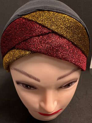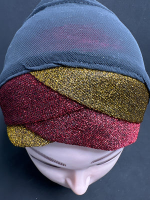 Hijab cap for ladies in Red, yellow & black with with glitter net fabric HC7