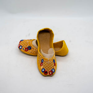Expertly handcrafted with intricate embroidery, these yellow khussa shoes are both stylish and comfortable. The traditional design adds a unique touch to any outfit, making them the perfect choice for any occasion. Made with high-quality materials, these khussa shoes ensure durability and long-lasting wear. Elevate your look with these beautiful, expertly crafted shoes.