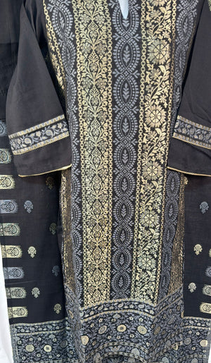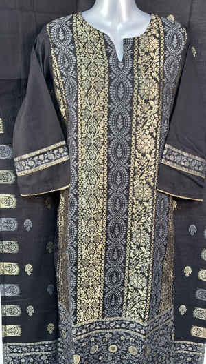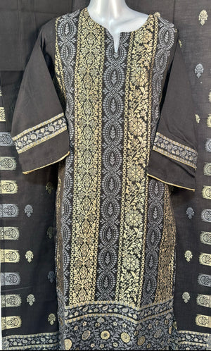 Three piece cotton Zari suit , perfect for any function , available in different colours